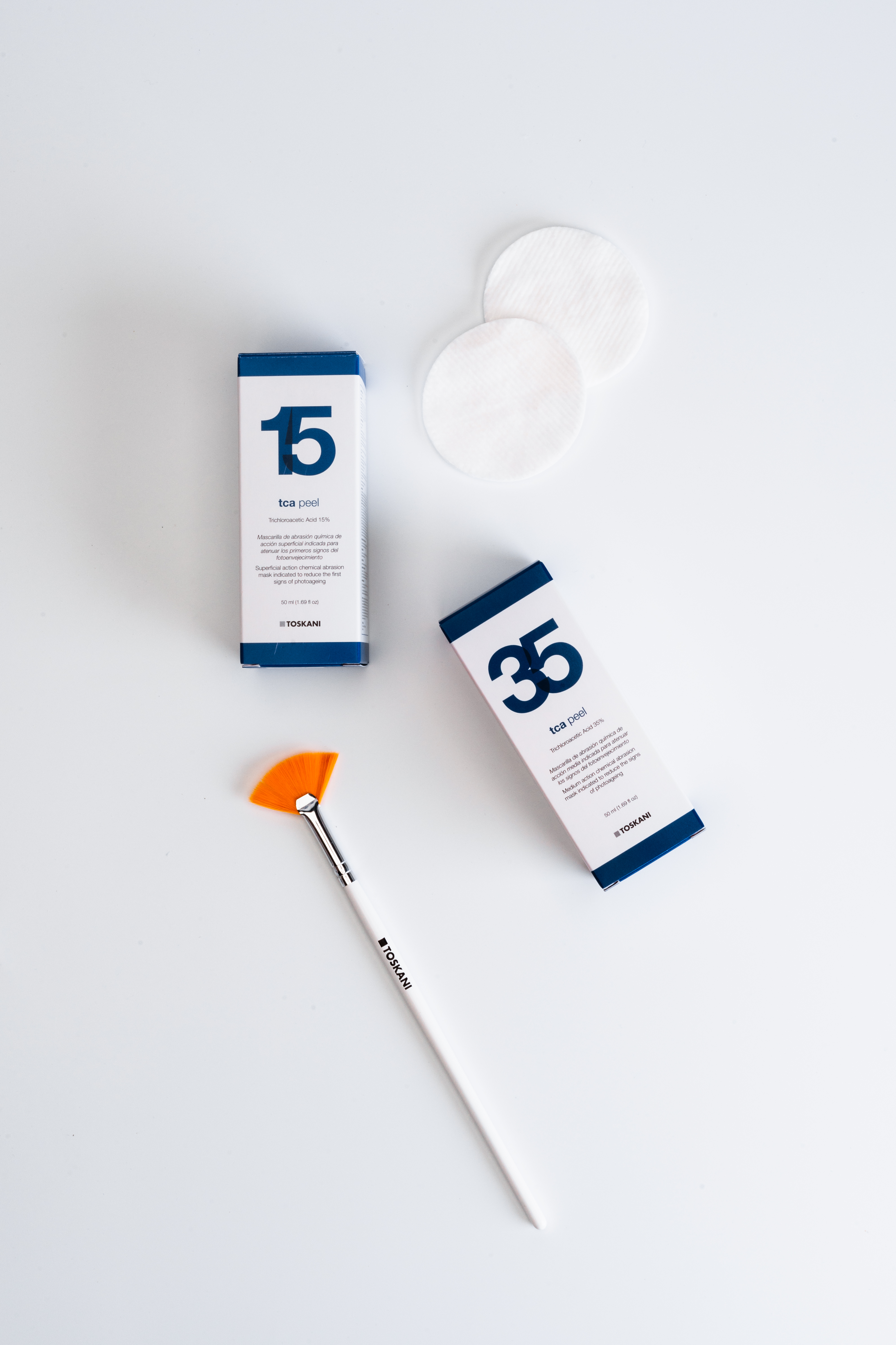 Das TCA wird am besten mit Vlieskompressen aufgetragen. Eine dünne Schicht auf das Gesicht (Stirn, Wangen, Nase, Oberlippe und Kinn bis zu 1 cm unterhalb der Kieferlinie) mit leichtem Druck auftragen. Versuchen Sie, beim Auftragen der Schichten diese nicht zu überlappen.
